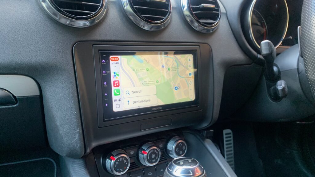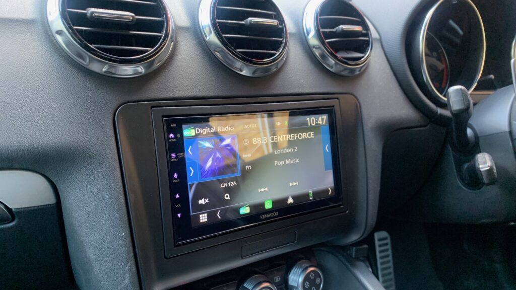 This time we chose the new model 6.8″ Wireless CarPlay / Android Auto Stereo from Kenwood, the DMX6523DABS.