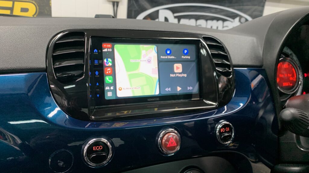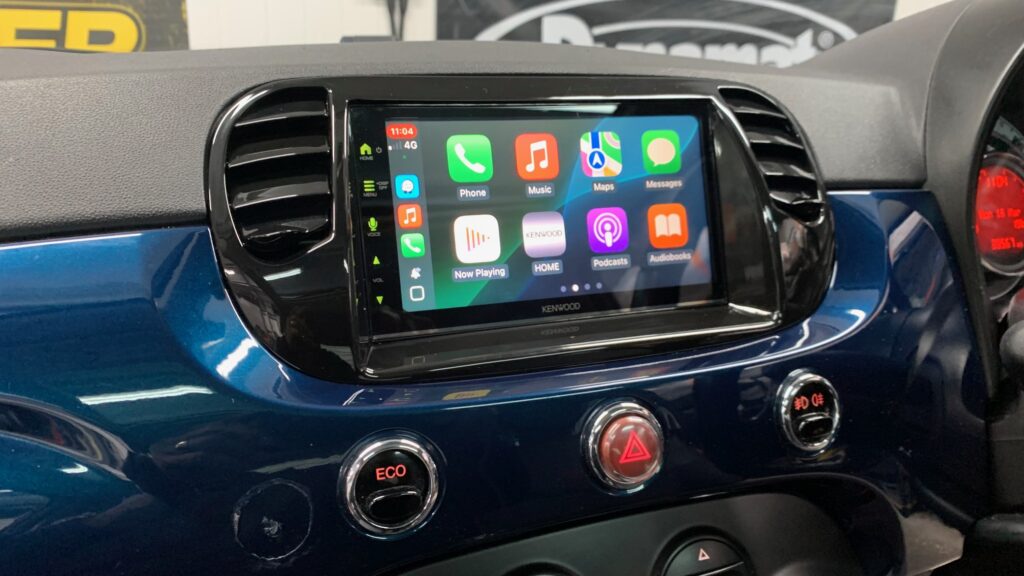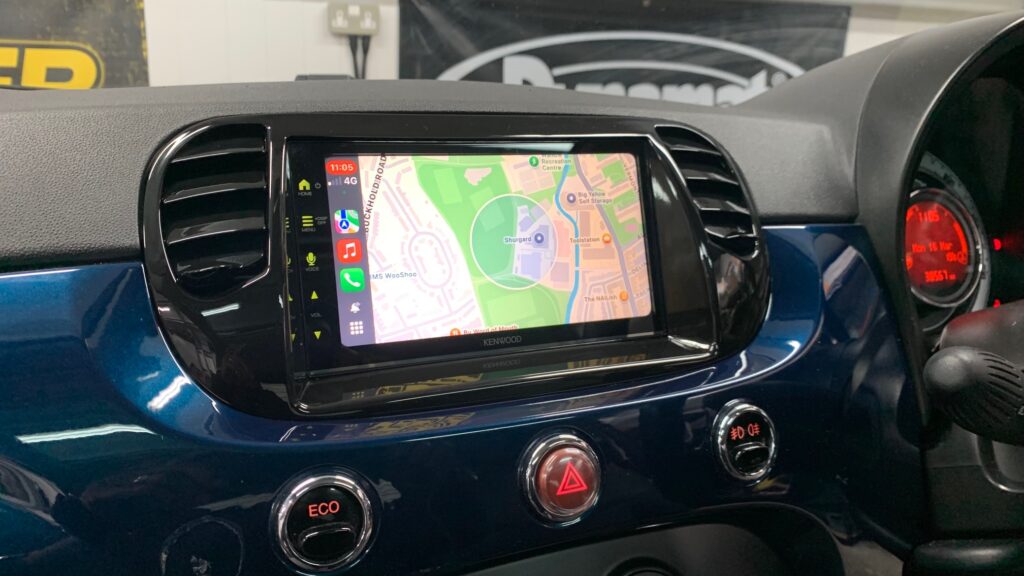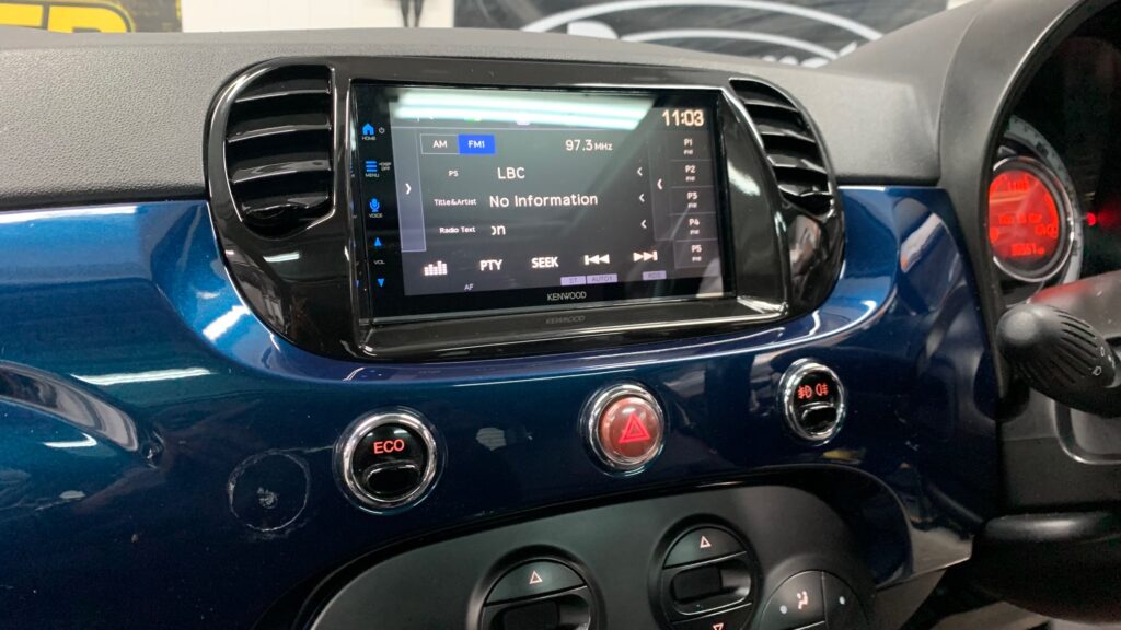 We’ve just transformed a 2015 Fiat 500 with the latest tech upgrade. The Kenwood DMX7722DABS Wireless CarPlay Stereo , installed seamlessly using the Connects2 CTKFT02 fitting kit.